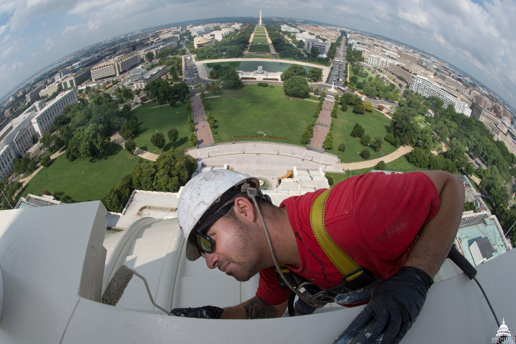 Architect of the Capitol painters act like high-wire artists as work continues on Dome Restoration Project. See photos.