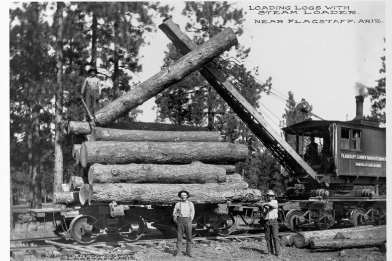 Workers used simple tools like axes and saws. Logs were cut into pieces and dragged by horses or oxen to processing areas, where they were split, stacked and prepared for use.
