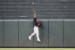 Mullins made a spectacular leaping catch at the center field wall in the fourth inning to rob Lukes of a two-run drive that would have tied the game at 6.