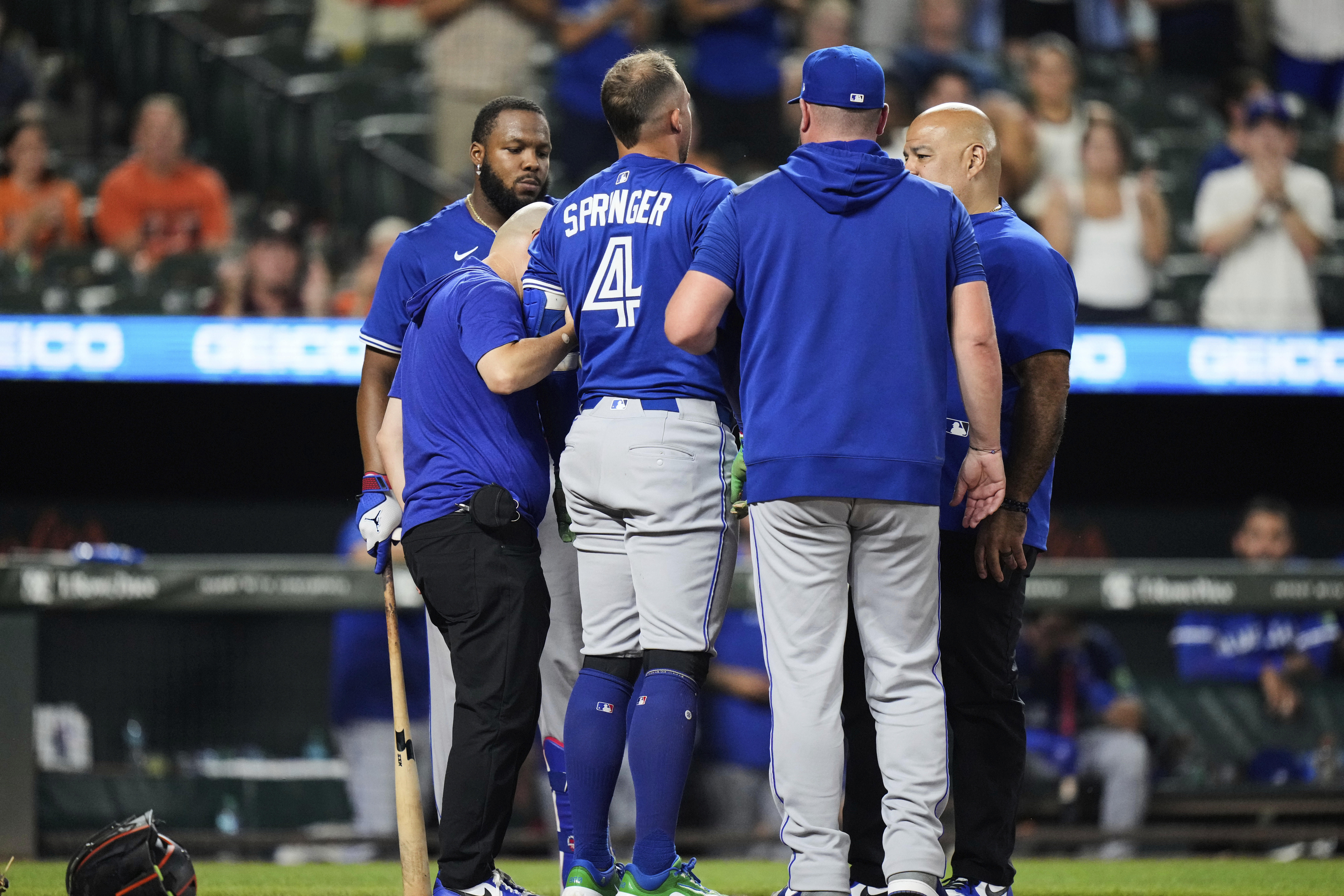 As Toronto’s designated hitter lay prone at the plate, the raucous crowd of 20,176 at Camden Yards immediately became silent. Quite suddenly, Baltimore’s seven-run ninth-inning lead over the Blue Jays on Monday night became of secondary importance to the condition of Springer, who was essentially motionless in the dirt.