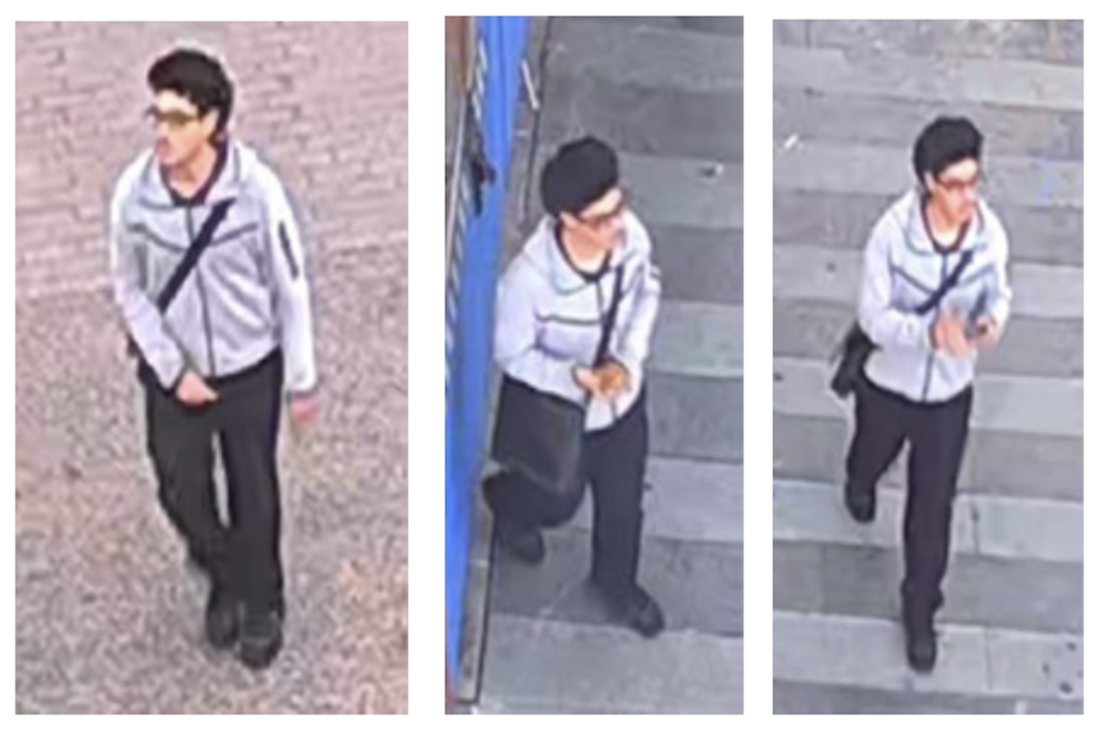 Surveillance footage in the area that was reviewed by authorities pinpointed a suspect that was seen wearing a gray jacket and black pants. The suspect was captured in the images below: