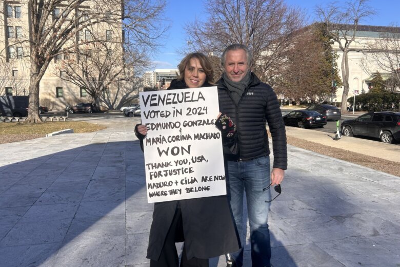 A small group of Venezuelans, their loved ones and advocates gathered Sunday at the General Simón Bolívar Memorial near the National Mall to celebrate the capture of President Nicolás Maduro and his wife, Cilia Flores.