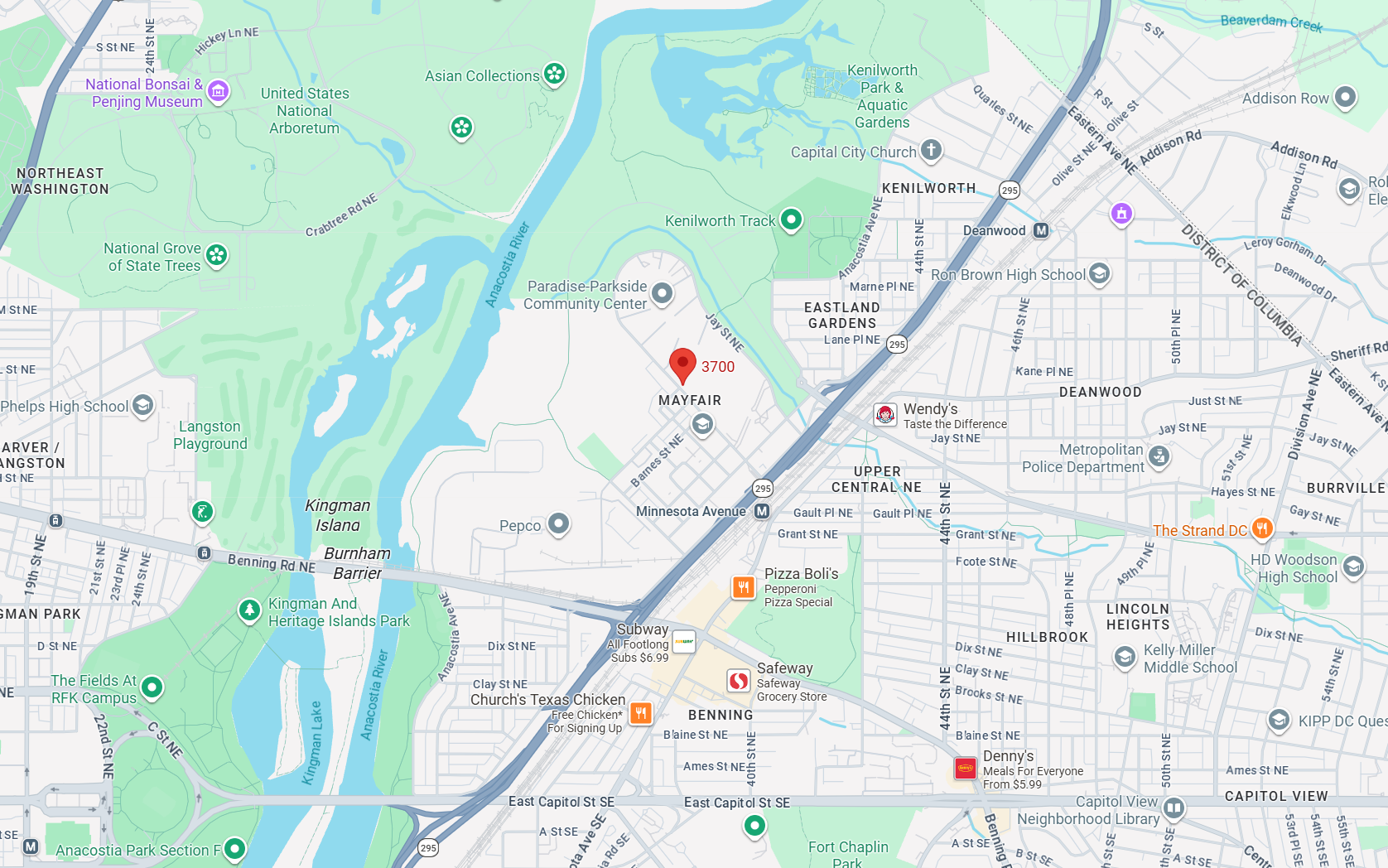 The shooting happened around 2:30 p.m. in the 3700 block of Hayes Street, on the eastern banks of the Anacostia River just south and west of Kenilworth.