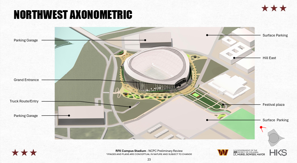 “Help me understand why we’re not seeing the development of those (garages) with the stadium package,” said Tammy Stidham, an NCPC commissioner and National Park Service lands and planning director. “They don’t have independent utility. They would not be there if you were not building a stadium.”