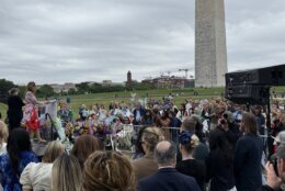 On Saturday, the National Mall appeared to bloom with butterflies. They were everywhere, on shirts and lapels, pinned to jackets and tucked into flowers resting on the ground near a stage, with the White House in the background.