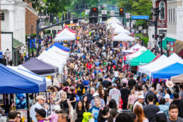 “I think folks are going to really enjoy that, because you’re going to notice them. They’re going to stand out in the crowd, and it also just adds to the ambience,” said festival co-chair Tina Disch, executive director of the Old Town Fairfax Business Association. “We’re hoping that folks will come and take pictures with them and interact with them.”