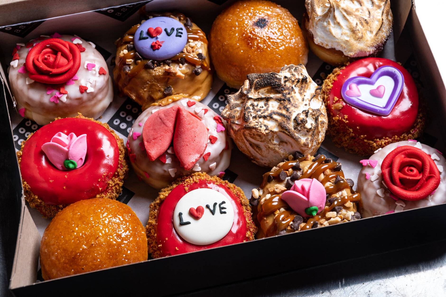 Donisima has three options for Valentine’s Day. The “Valentine’s Day Special Box” is available for $20 with one limited-edition berry cheesecake doughnut, topped with white chocolate and delicate rose details.