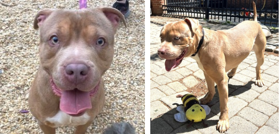 Rizz has been thriving in her foster home. She gets along wonderfully with children and even the resident cats. She may be OK with mild-mannered dogs, if they’re introduced slowly and properly.