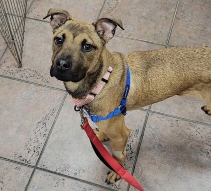Femona is a 2-year-old Carolina Dog bursting with brains, energy and love. This affectionate, playful pup is always ready for a sniffy walk, a good game of tug, or a training session to show off her ever-growing list of commands. She’s already mastered sit, paw, down, touch, wait and crate — and she’s well on her way with fun tricks like spin, sit pretty and roll over. If you’re looking for a clever companion who loves learning and thrives with mental stimulation, Femona is your girl.