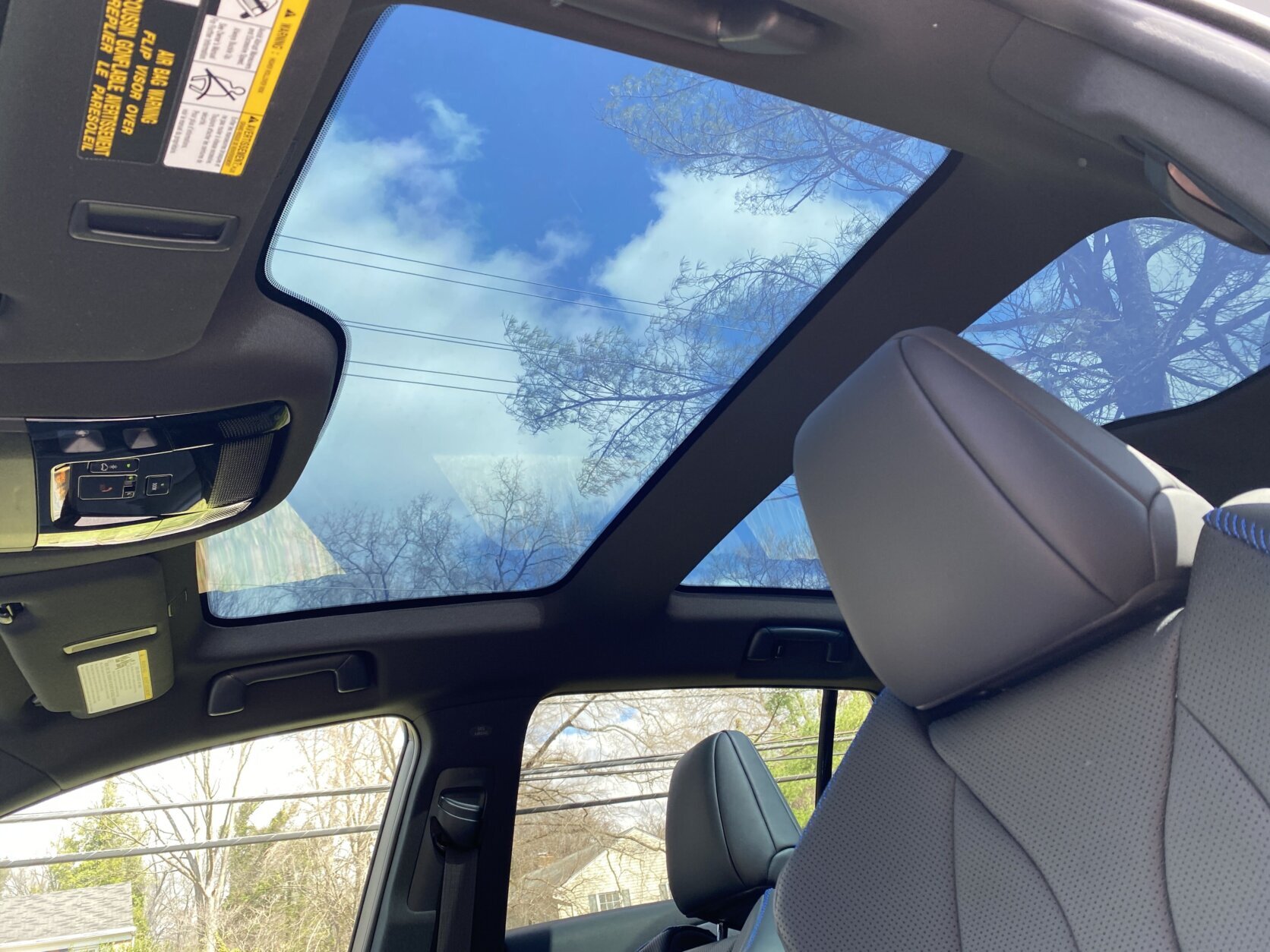 Now to those tricks: this has what’s called a Dynamic Sky Panorama Glass Roof, which turns from opaque to clear with the press of a button.