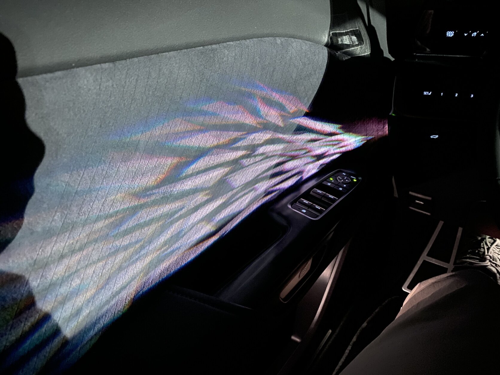 The interior door panels have a soft, flickering light projected onto them. Lexus says: “the faintly changing shadow patterns evoke the passage of time.” Woah, deep. I was still wrapping my head around Wind as a color.