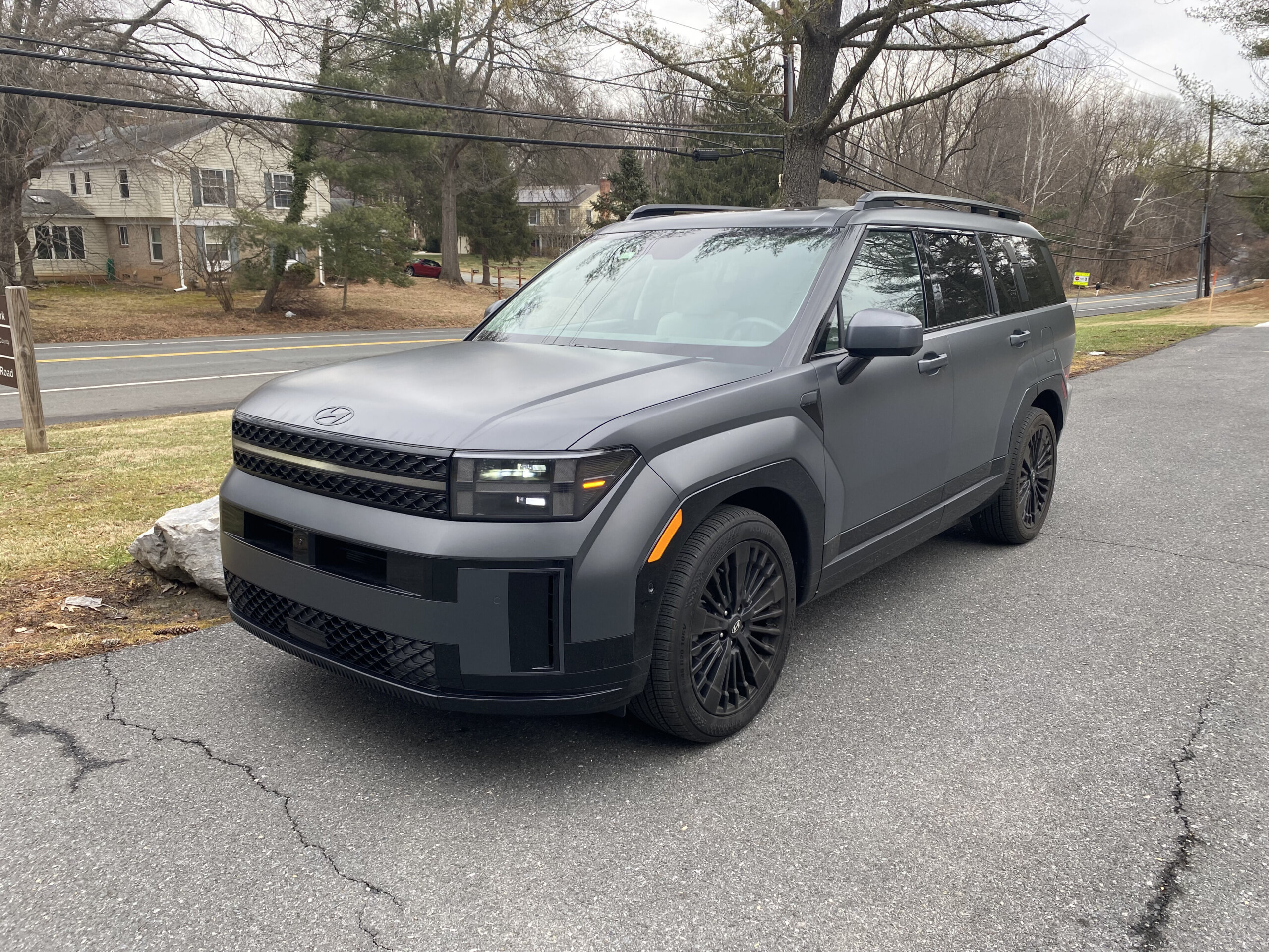 What happens when you “borrow” some of the DNA of a Land Rover Defender, and maybe mix in a little Cybertruck styling to boot? The result is this boxy and tough-looking Hyundai Santa Fe, which further looks the part in optional matte gray paint.