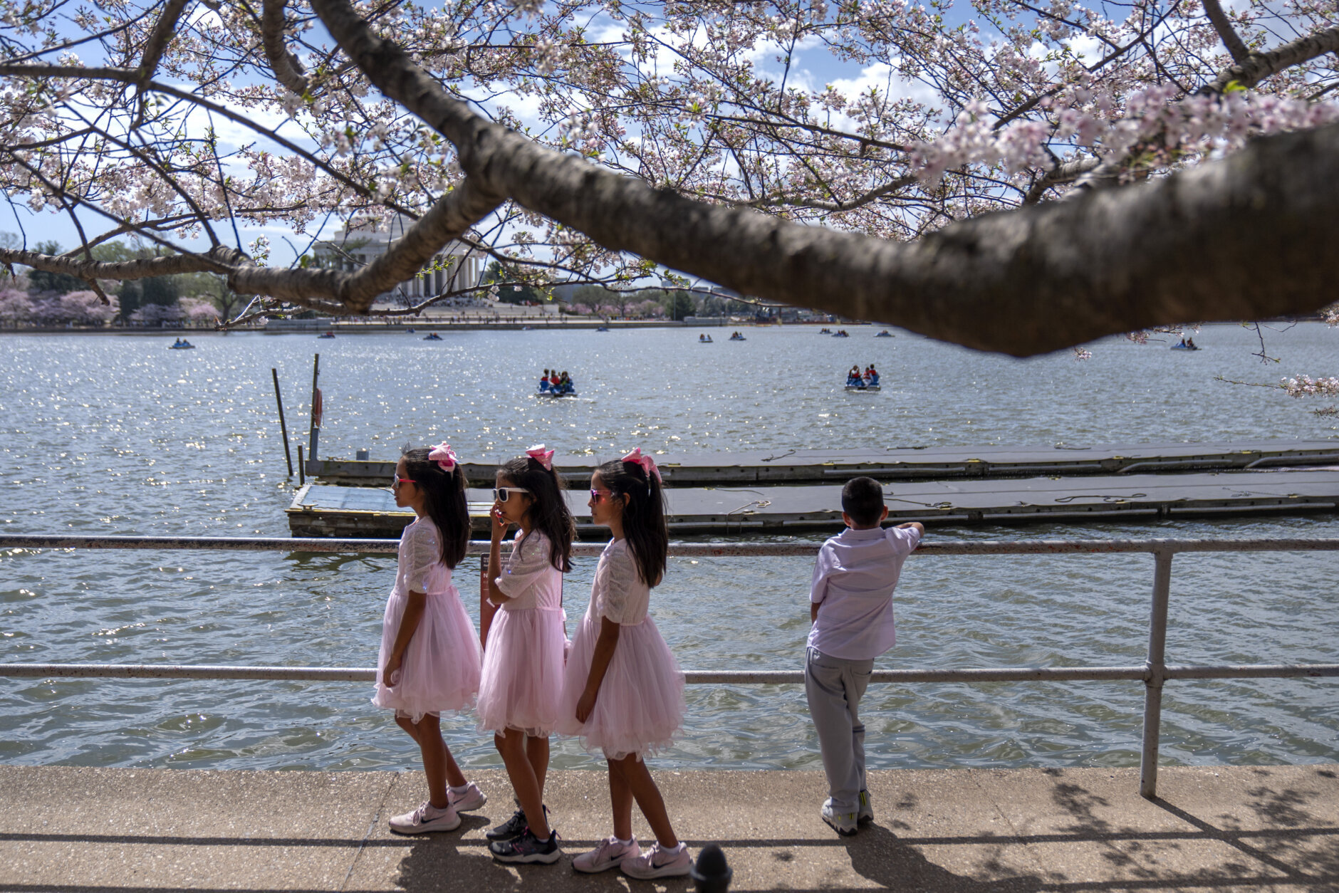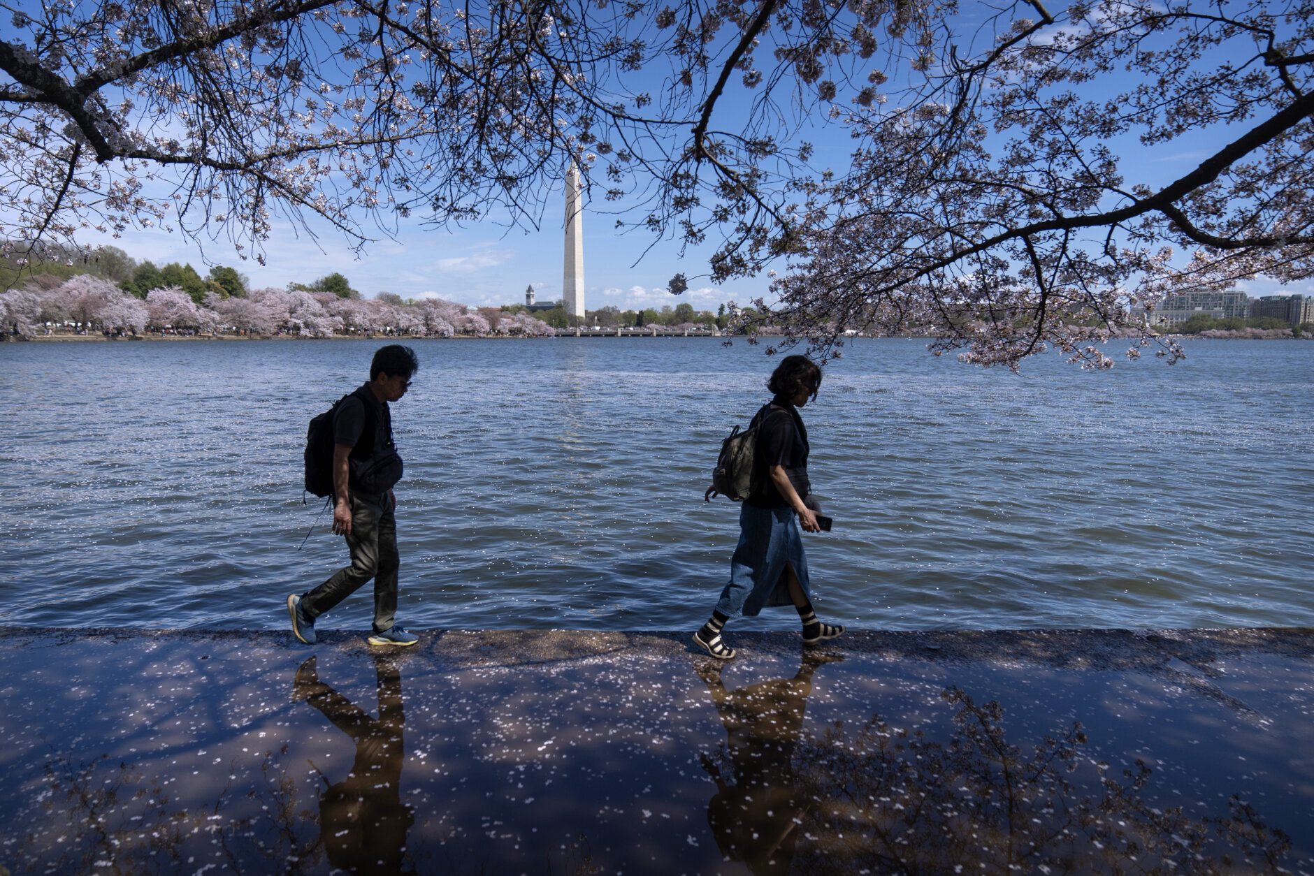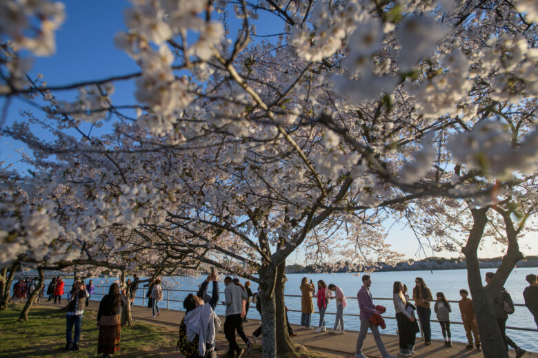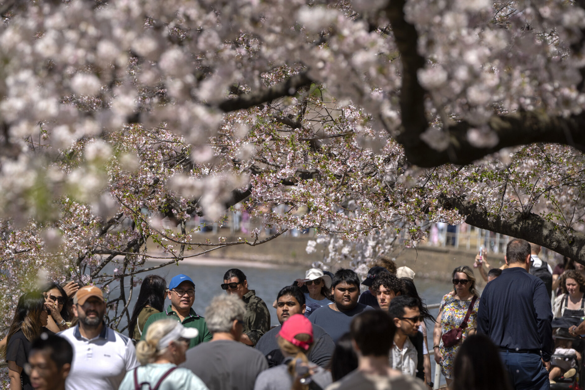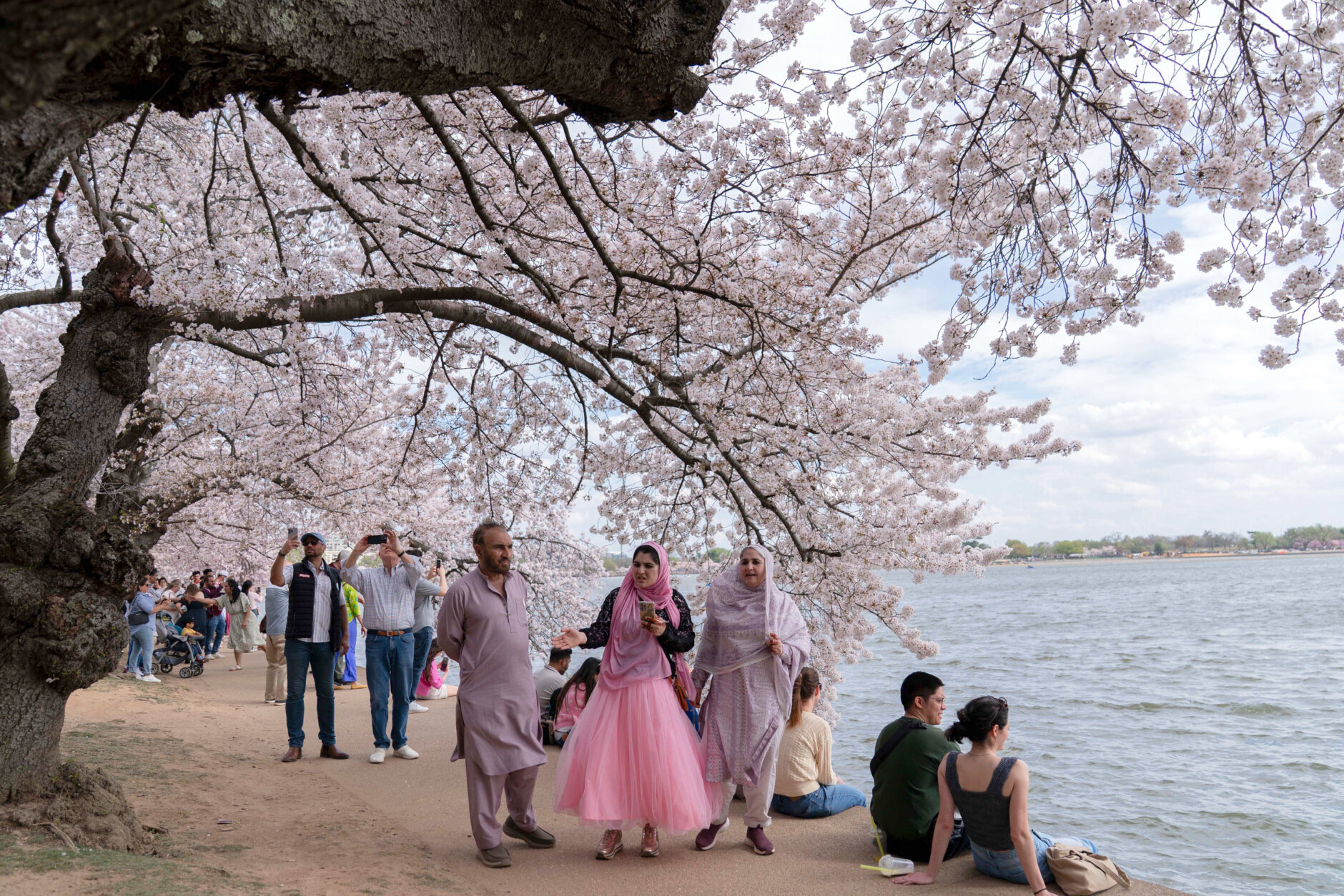 The famed cherry blossom trees that line the Tidal Basin in D.C. have reached peak bloom and thousands of visitors have come into the city to see them.
