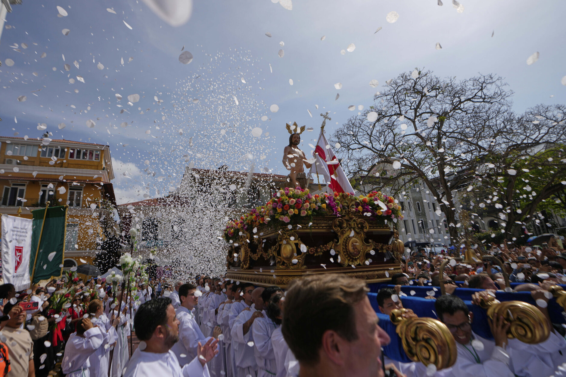 Catholics carry a statue of Jesus Christ during an Easter procession in Panama City’s Casco Viejo, Sunday, April 20, 2025.