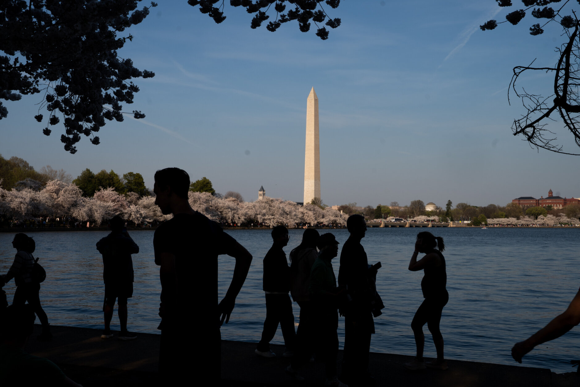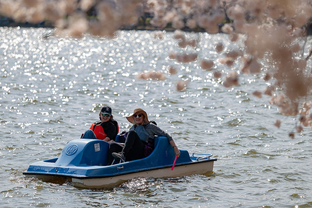 Now that more than 70% of cherry blossom blooms are open, visitors are flocking to the Tidal Basin to take in the views.