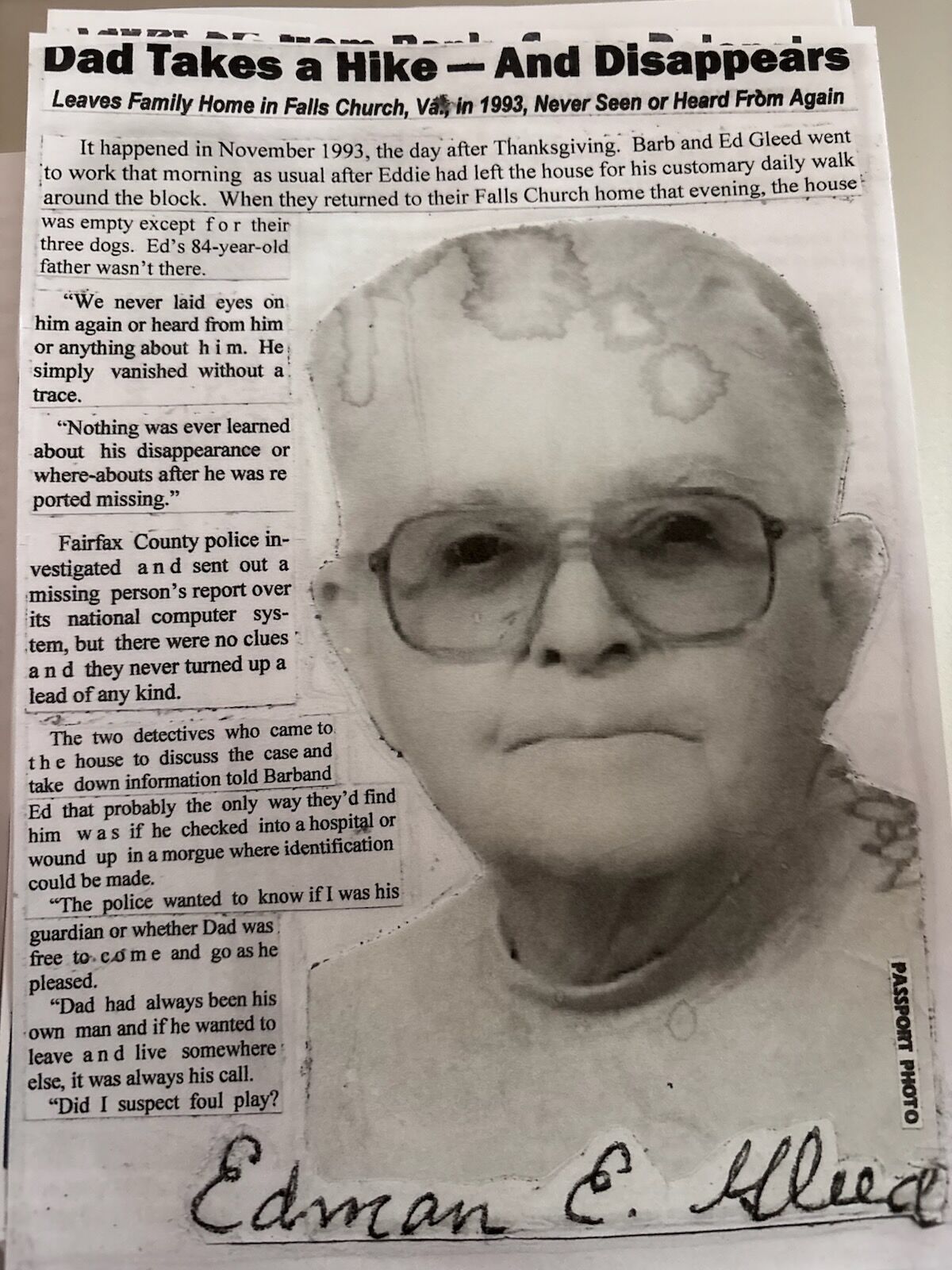 This week, the son, who now lives in North Carolina, was told the man found in Florida in 1993 was his father, Edman Eric Gleed, 84. It’s not clear how or why Edman traveled to Florida from Fairfax County.