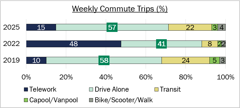 In its once-every-three-years study of commuter behaviors, the Metropolitan Washington Council of Government’s “2025 State of the Commute Survey Report,” shows a return to pre-pandemic patterns, with driving alone still the most common way people get to work.