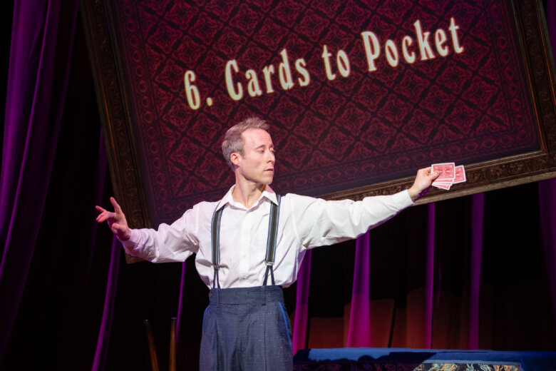 Dendy recounts being a lonely, only child. But once he got his first magic set, everything changed. He was hooked for life. And once he transforms himself into that little kid — complete with a lisp — in the first act, the audience is hooked, too.