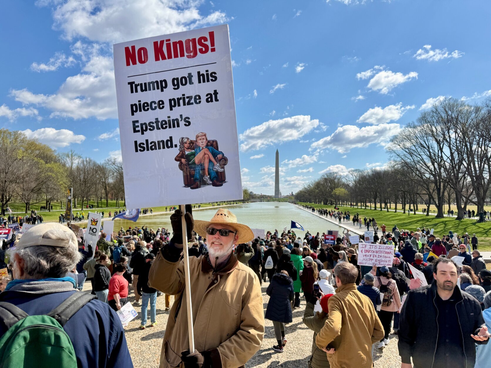 Demonstrators rally in front of the Lincoln Memorial during the No Kings protest in Washington, Saturday, March 28, 2026.