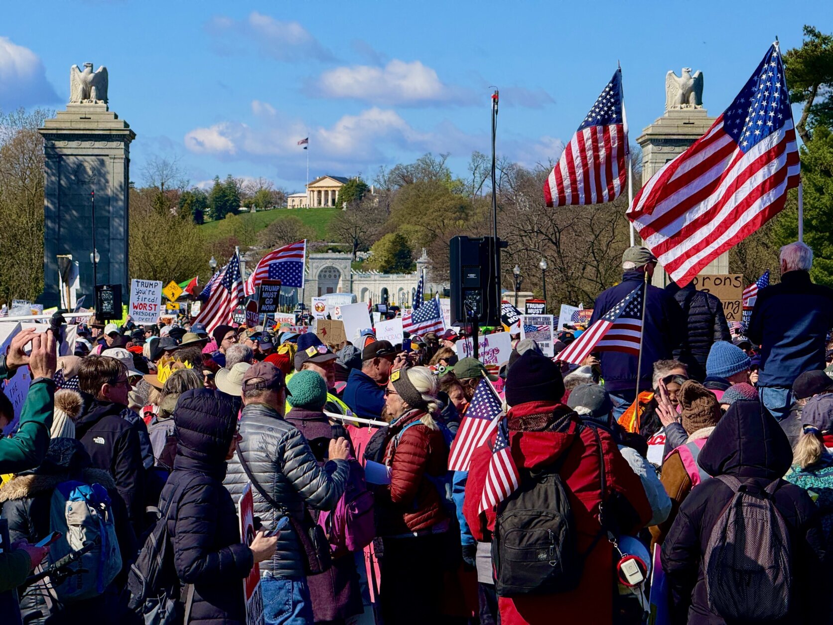 Thousands braved the chilly weather Saturday to join the “No Kings” rally.
