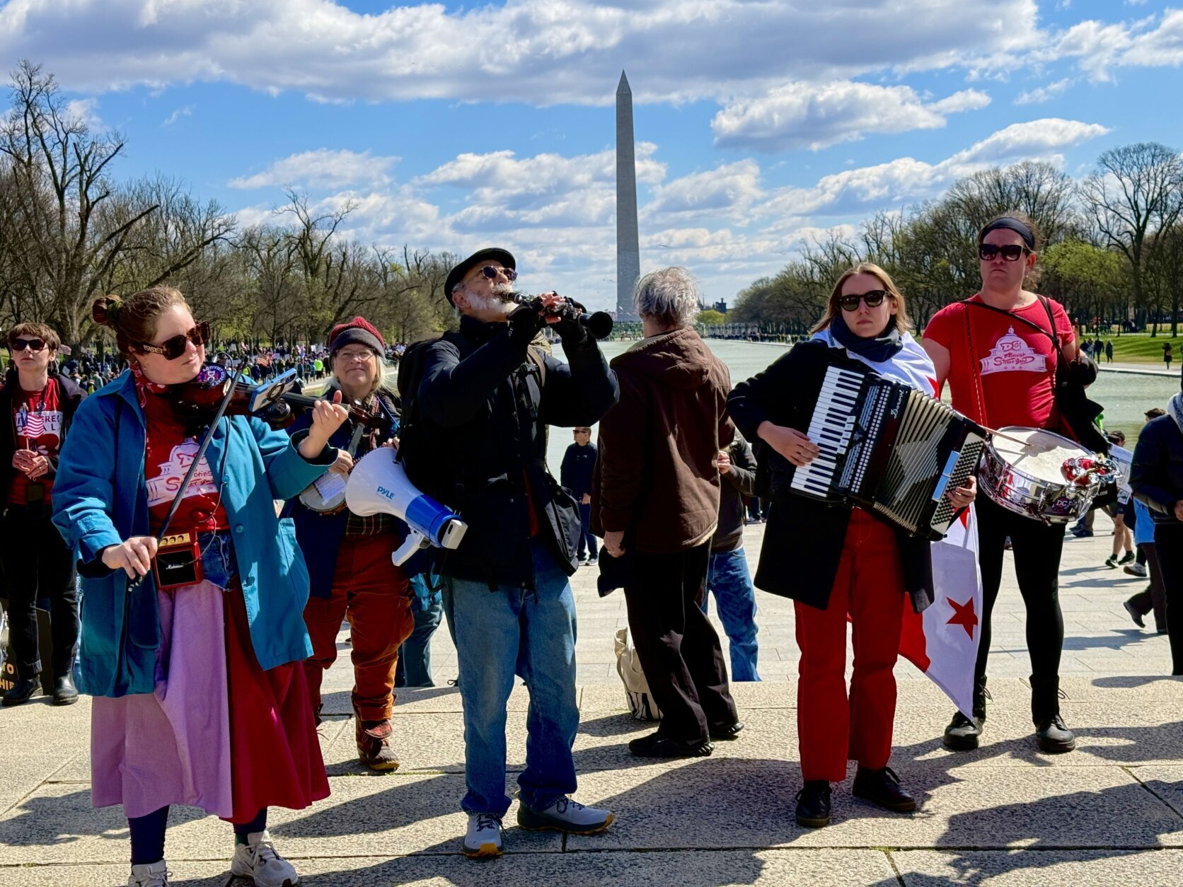 Demonstrators march down the National Mall during the No Kings protest in Washington, Saturday, March 28, 2026.