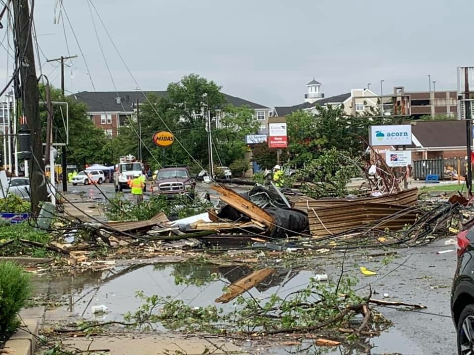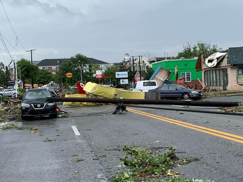 “There was a bunch more downed power lines. They’d already cleaned it up for the most part, but it looks like lots of, you know, metal roofing and insulation materials, like you’ll often see if a … tornado … actually touches down,” Adams told WTOP.