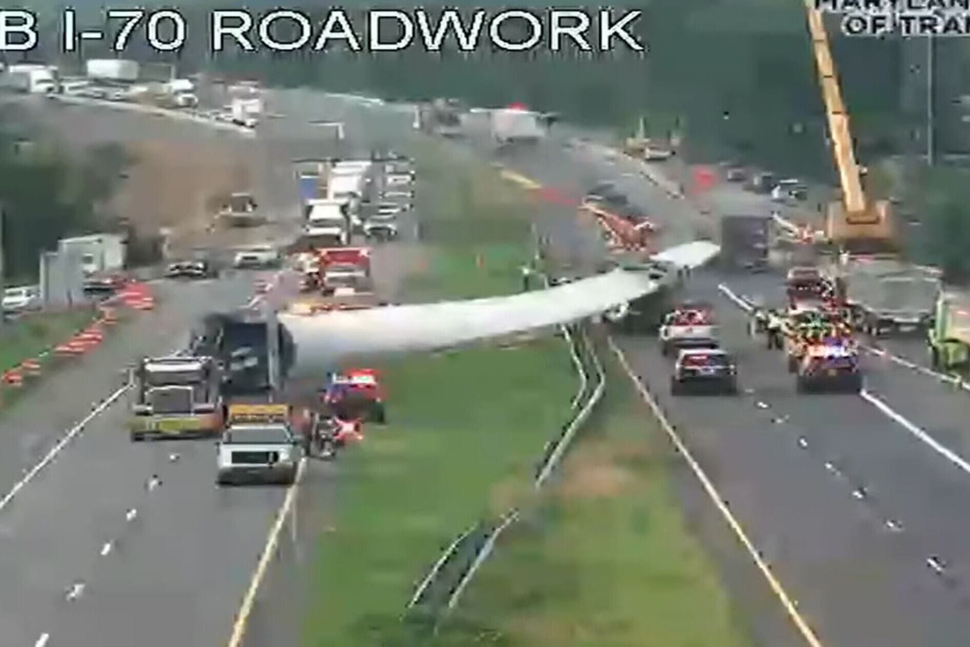 The WTOP Traffic Center had been reporting delays tied to the scene until just after the blade was removed from the median of I-70 around 8:08 a.m. Traffic appeared to be flowing normal in both directions less than half an hour later.