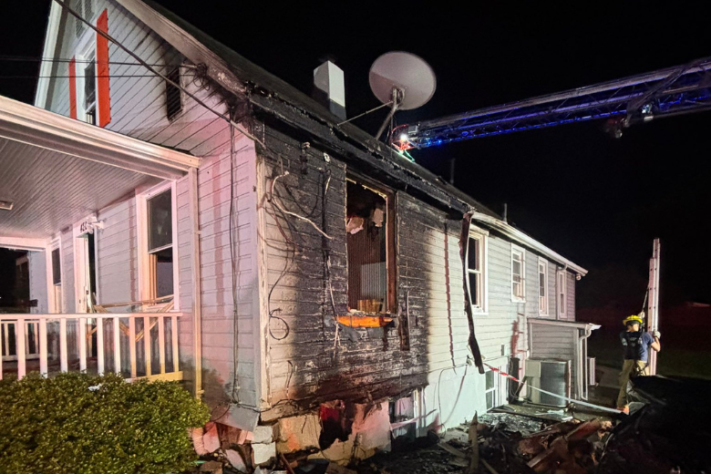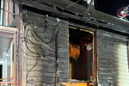 Exterior view of damages brought onto a Montgomery County, Maryland, home that was engulfed in flames after a car drove off the road and into the house’s gas utilities.