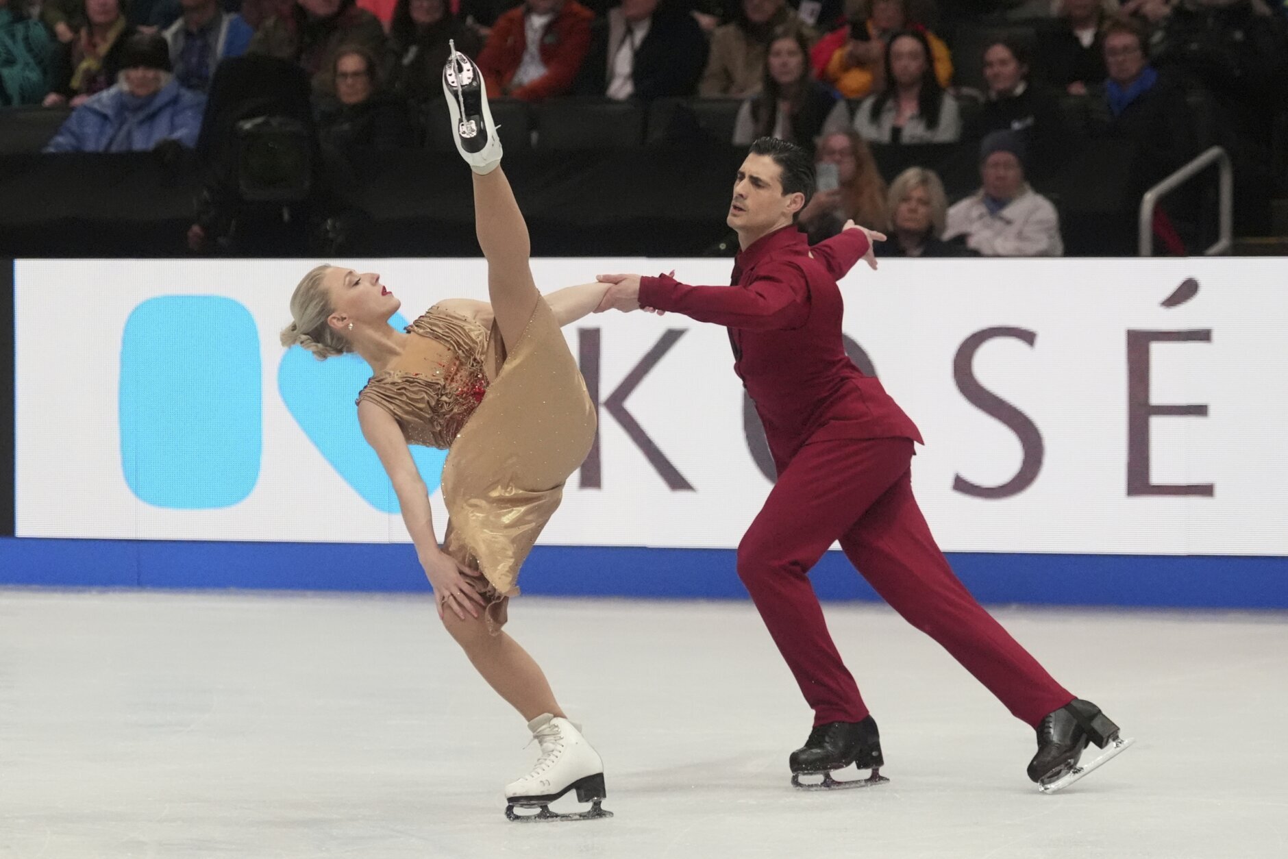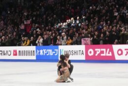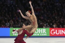 The longtime partners won with 222.06 points Saturday night, while Gilles and Poirier took silver for the second consecutive year with 216.54. Lilah Fear and Lewis Gibson landed on the podium in third, earning Britain its first worlds medal of any color since Jayne Torvill and Christopher Dean finished their run of four straight ice dance titles in 1984.