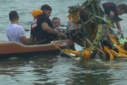 Sky Decker, a professional yacht captain who lives about a mile (1.6 kilometers) from the crash site, said he jumped in his boat to see if he could help. He said he picked up two police officers who directed him through thick fog to a nearly completely submerged plane. Decker jumped in the water and found a badly injured woman trapped beneath chairs and other debris.