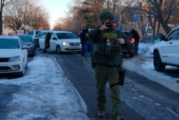 A group of protesters blew whistles and pointed out federal officers in a vehicle on a north Minneapolis street. When the officers’ vehicle moved, a small convoy of activists followed in their cars for a few blocks until the officers stopped again.