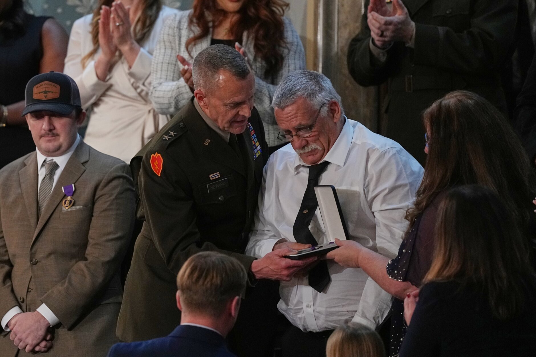 State of the Union West Virginia National Guard Staff Sgt. Andrew Wolfe is awarded a Purple Heart during President Donald Trump's State of the Union address to a joint session of Congress in the House chamber at the U.S. Capitol in Washington, Tuesday, Feb. 24, 2026. (AP Photo/Alex Brandon)