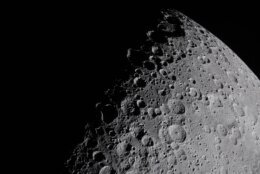 Proposed Carroll Crater is at the moon’s left limb on the boundary of the moon’s near and far sides, and occasionally visible from Earth. It’s rather shallow and approximately 3 miles (5 kilometers) across, according to Watkins. The slightly bigger Integrity crater is completely on the lunar far side.
