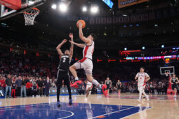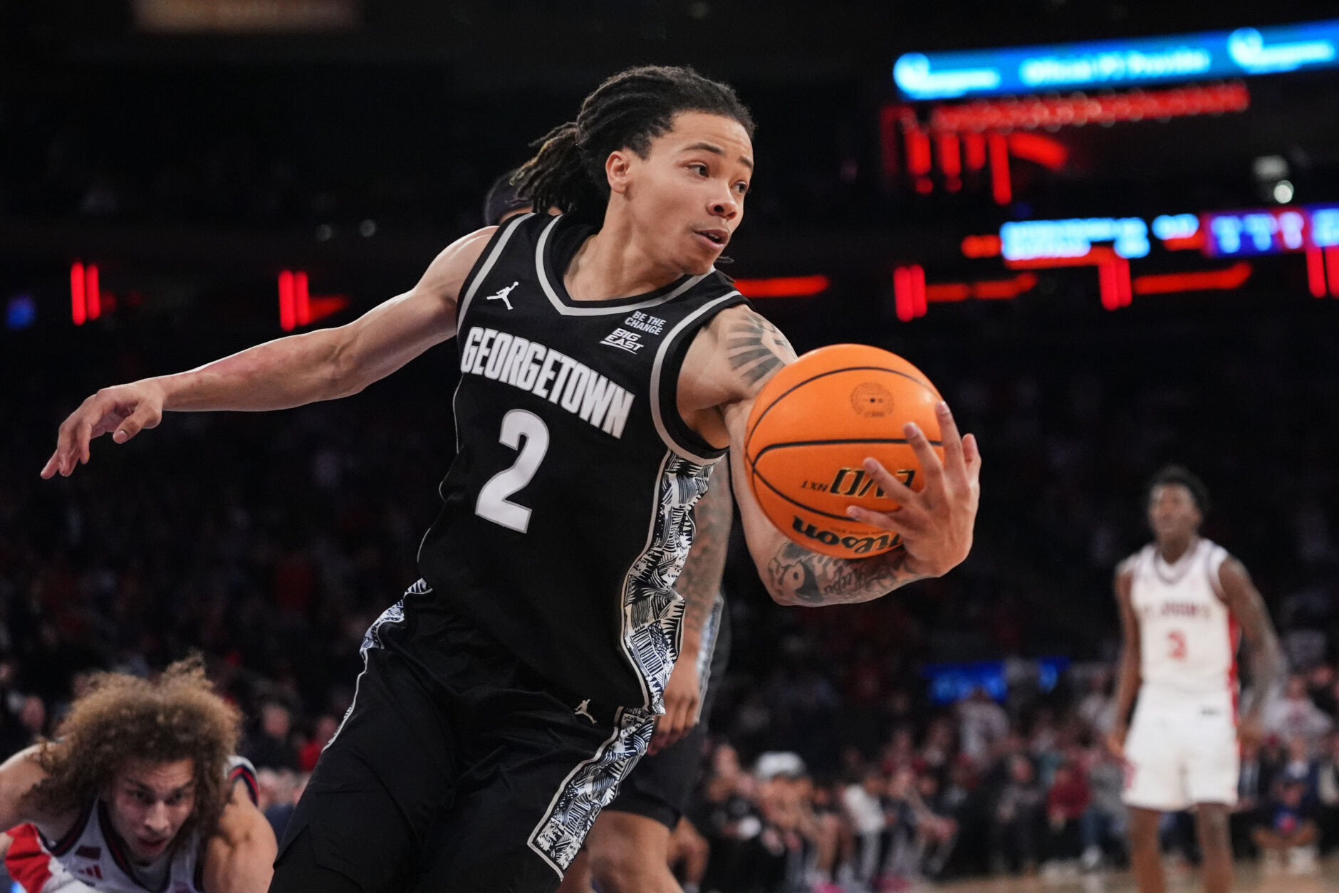 Georgetown St Johns Basketball Georgetown Hoyas' Jeremiah Williams (25) drives past St. John's Red Storm's Zuby Ejiofor during the first half of an NCAA college basketball game Tuesday, March 3, 2026, in New York. (AP Photo/Frank Franklin II)