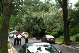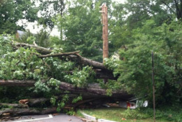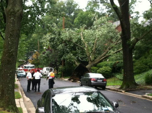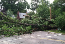 During Wednesday afternoon’s storms, a large tree uprooted and toppled into at least one house on Arcadia Place off Western Avenue in Northwest D.C.