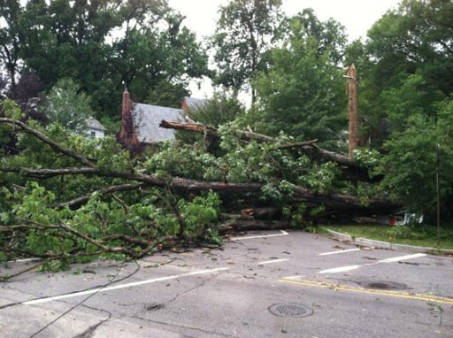 The derecho also cut off power to homes on the street for days.