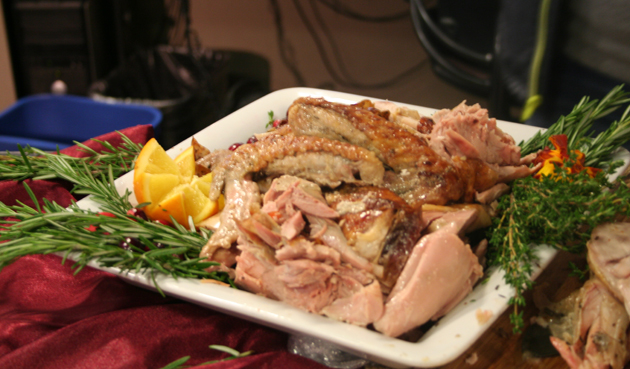 Watch Chef Jeffrey Katz of Amphora demonstrate how to carve a turkey. (WTOP/Neal Augenstein)(WTOP/Sarah Beth Hensley)