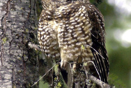 Spotted Owl The northern spotted owl was listed as threatened in 1990 because of loss of old growth forest habitat to logging. Lawsuits led to establishment of millions of acres of reserves on national forests to protect not just the owl's habitat, but that of threatened salmon and a host of other species. Despite the logging cutbacks, the owl has continued to decline by about 3 percent a year. Scientists have now identified the top threat to its survival as the invasion of the barred owl, a more aggressive and adaptable cousin that migrated across Canada from the East Coast and is driving spotted owls out of their territories. Last year, U.S. Fish and Wildlife Service began an experiment to remove up to 3,600 invasive barred owls from Oregon, Washington and Northern California to see if that will provide enough save havens to reverse the decline. (AP)