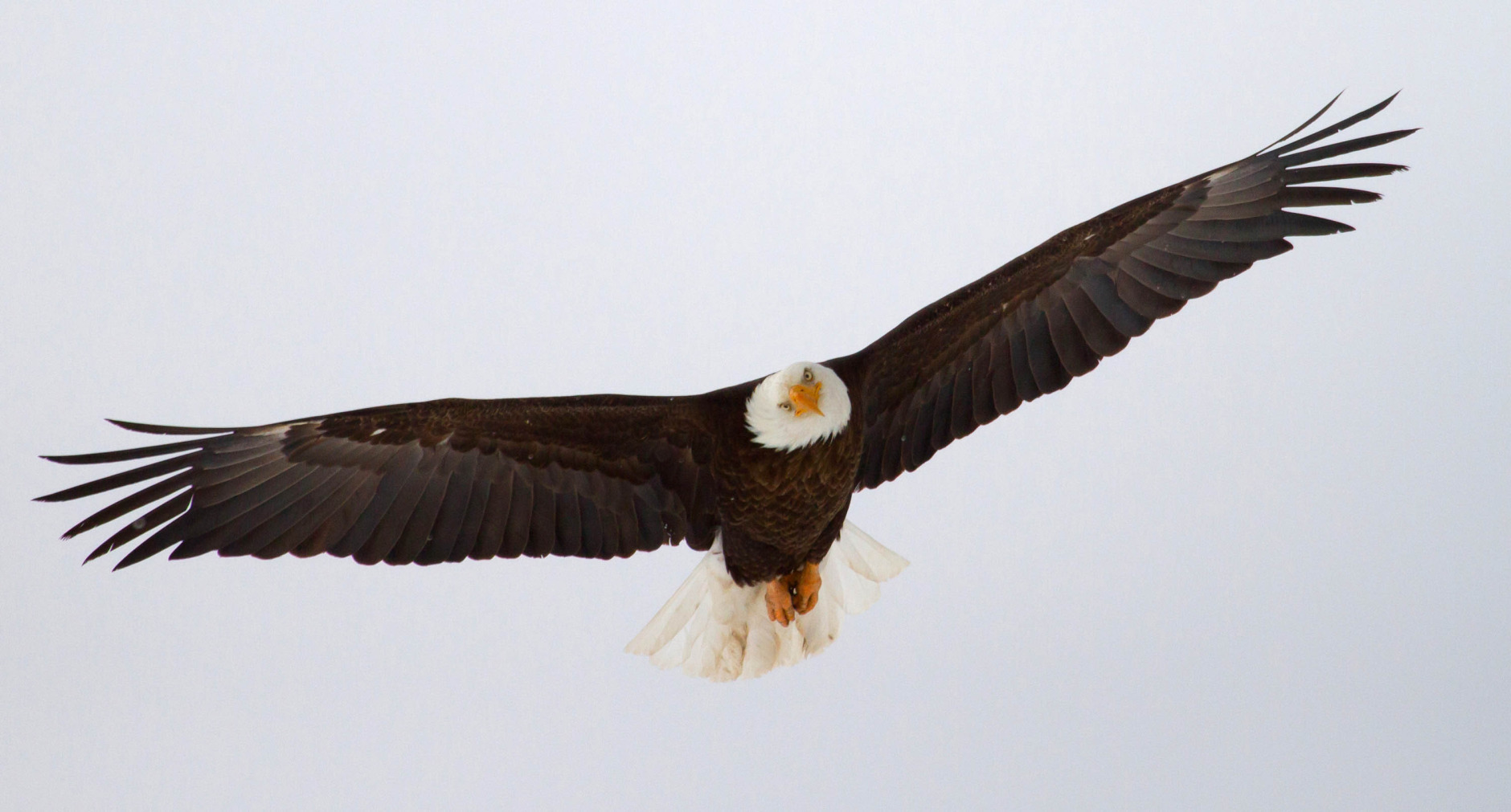 Bald Eagle The official symbol of the United States nearly became extinct through hunting and the widespread use of the pesticide DDT. In 1963, there were just 417 of the birds documented in the nation. More than $574 million was spent on the eagle's recovery through 2007, the year its numbers reached about 10,000 mating pairs in the Lower 48 states and it was taken off the list. It is still illegal to kill a bald eagle under a 1940 law passed by Congress. The Fish and Wildlife Service says the bald eagle is now known or believed to be in all Lower 48 states, along with Alaska, where it was never considered threatened. (AP)