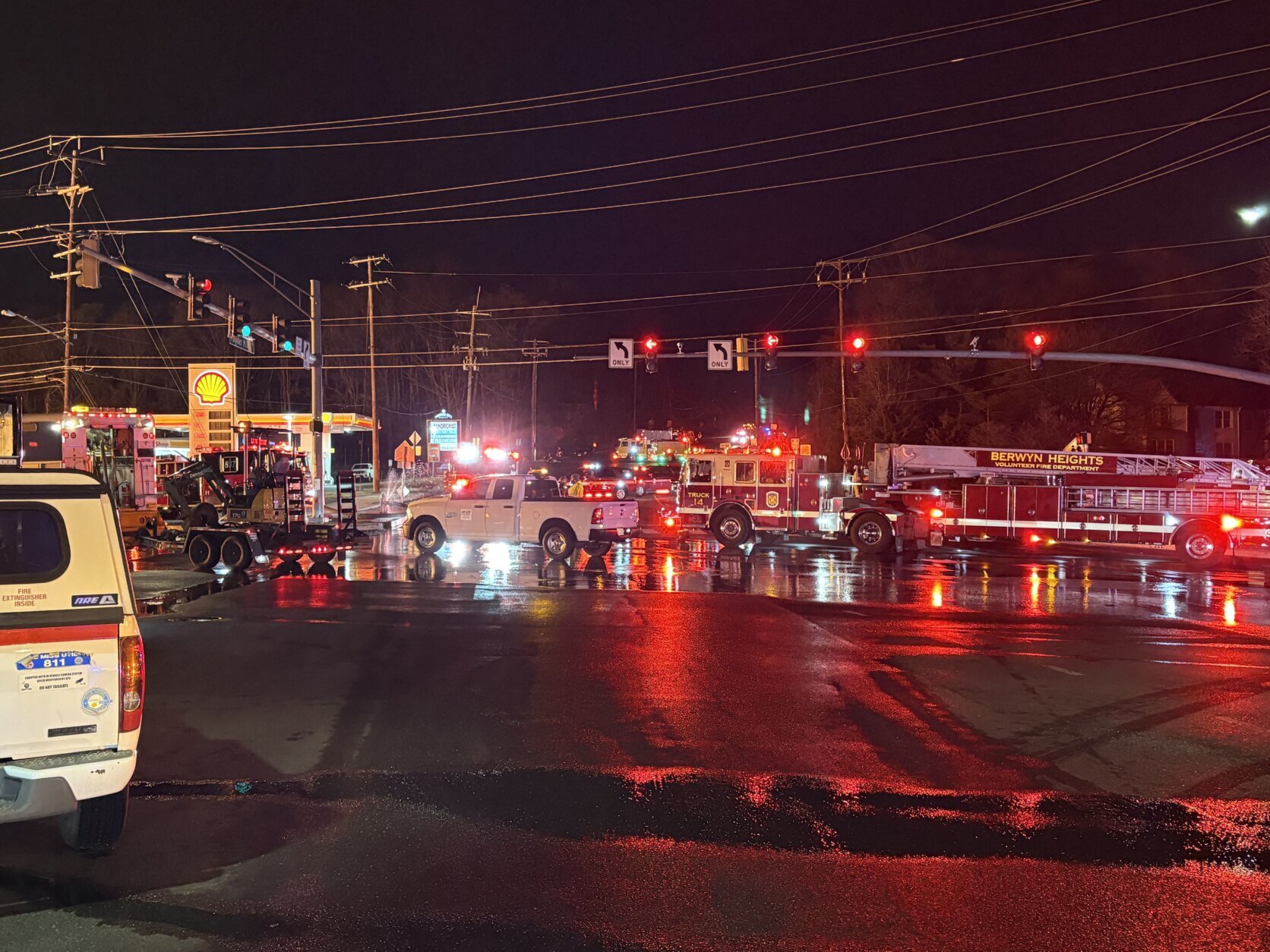 7News reporter Tom Roussey told WTOP early Saturday morning that crews that were working on a water main in the area on Friday morning hit a gas line.