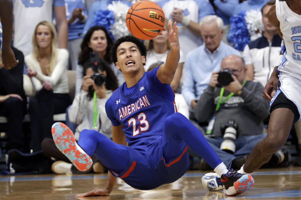 “Last year we gave up a ton of points from the 3-point line. Teams were shooting 37-38 percent from three, they were making almost nine a game,” American head coach Duane Simpkins told me earlier this week. “We restructured our defense this summer to be more impactful on the ball, guard the ball better, and in particular guard 3-point line better. We wouldn’t help off drives and things like that, and it’s worked for us.”