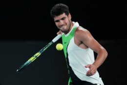 Top-seeded Carlos Alcaraz faced Alex de Minaur in the last match of the day. Alcaraz has lifted six Grand Slam titles but has never won the Australian Open and has lost in the quarterfinals here the last two years.