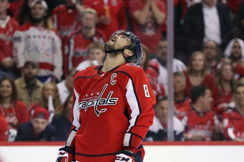 WASHINGTON, DC – APRIL 24: Alex Ovechkin #8 of the Washington Capitals looks upward following a first overtime save by Petr Mrazek #34 of the Carolina Hurricanes in Game Seven of the Eastern Conference First Round during the 2019 NHL Stanley Cup Playoffs at the Capital One Arena on April 24, 2019 in Washington, DC.