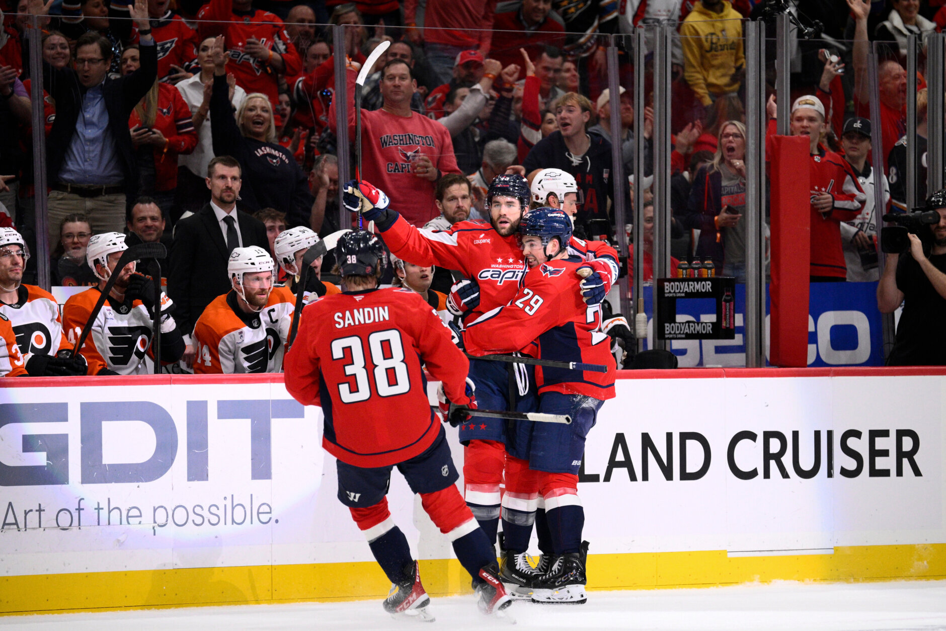 Barkey’s deflection brought the Flyers within one, but Washington and Thompson fended off a comeback effort while Wilson iced the win late with an empty-netter.