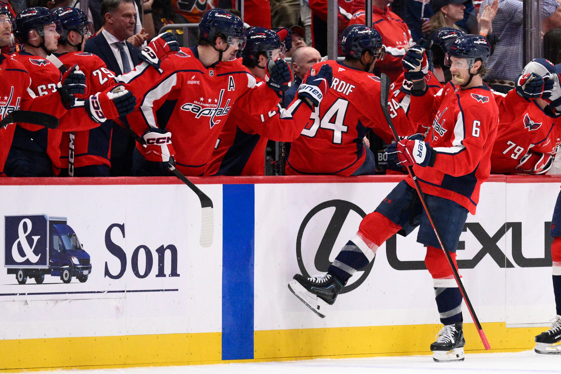 Late in the first, Wilson’s shot from the slot made it 1-0 in his 900th career NHL game. Minutes later, Ovechkin cashed in Matt Roy’s cross-crease feed to extend Washington’s lead to 2-0.