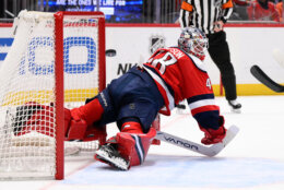 Washington’s power play — a sore spot for much of this season — produced both its goals in this game, but after Leonard pulled the Capitals within one with 13:29 remaining, they were unable to tie it.