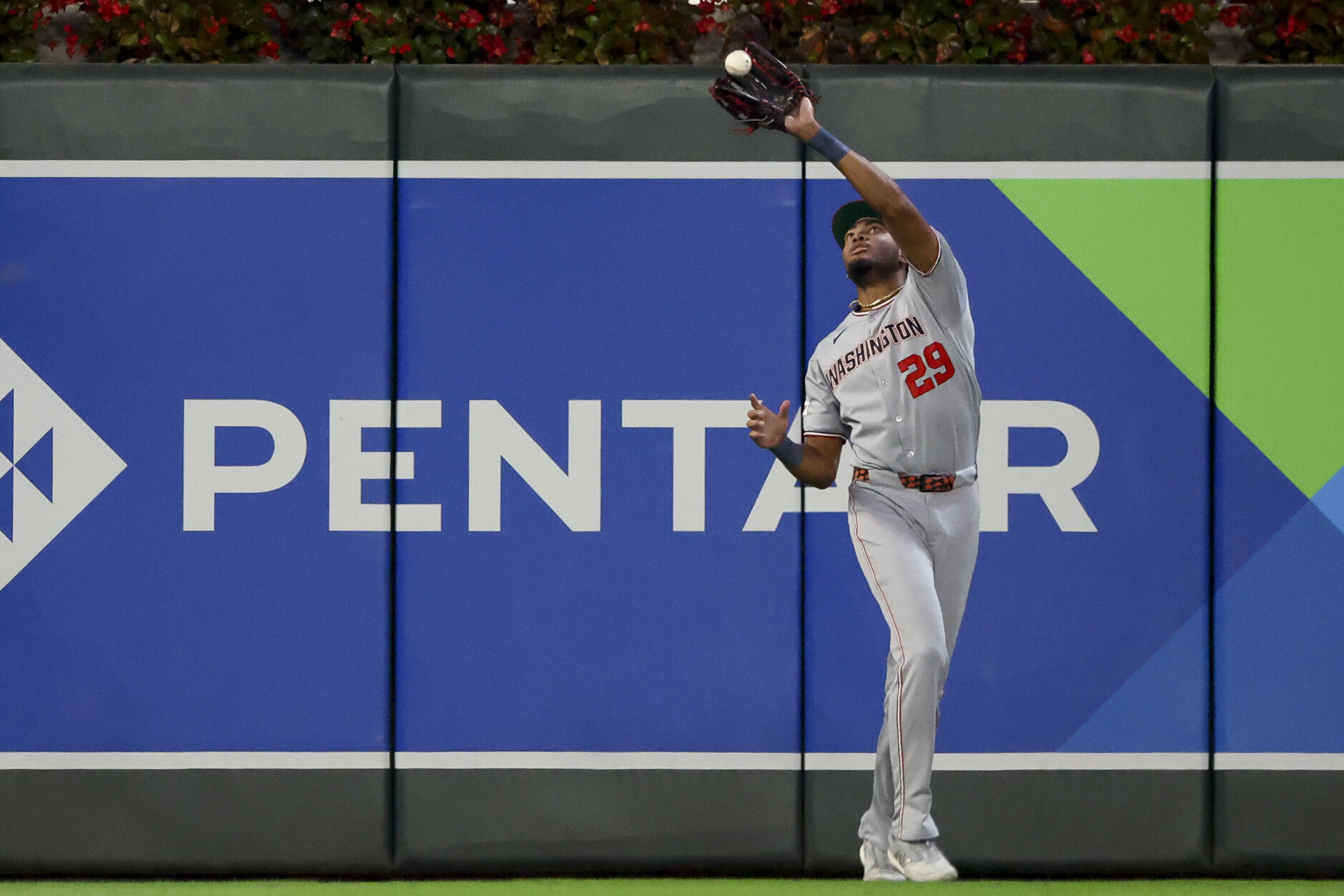 Daylen Lile hit a one-out double in the eighth off Griffin Jax, but the right-hander responded by fanning Riley Adams on three pitches. Jax walked Jacob Young but got CJ Abrams to fly out to finish the inning.