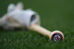 Nationals Cubs Baseball A bat rests on the field as the Washington Nationals warm up before an opening-day baseball game against the Chicago Cubs, Thursday, March 26, 2026, in Chicago. (AP Photo/Erin Hooley)