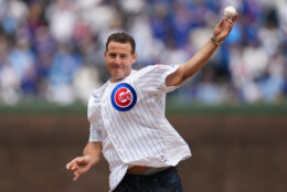 Nationals Cubs Baseball Former Chicago Cubs first baseman Anthony Rizzo throws out a ceremonial first pitch before an opening-day baseball game against the Washington Nationals, Thursday, March 26, 2026, in Chicago. (AP Photo/Erin Hooley)