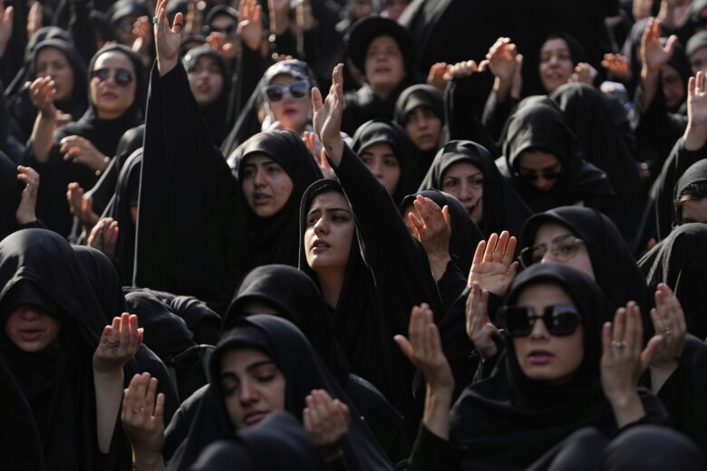 In predominantly Shiite Iran, red flags represented Hussein’s blood and black funeral tents and clothes represented mourning. Processions of chest-beating and self-flagellating men demonstrated fervor. Some sprayed water over the mourners in the intense heat.